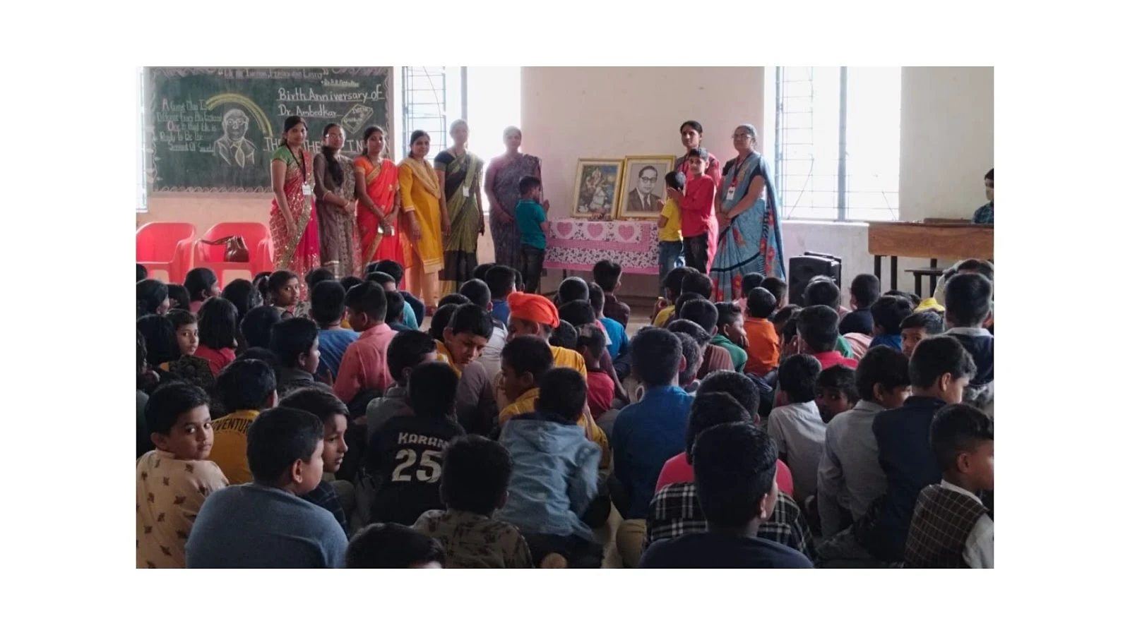 जयंतीनिमित्त विद्यार्थ्यांनी उस्फूर्तपणे भाषणे केली . विद्यार्थ्यांनी आंबेडकरांच्या बालपणीच्या जीवनावर आधारित सुरेख नाटक सादर करून विद्यार्थ्यांची व शिक्षकांची दाद मिळवली. आंबेडकरांचा 'वाचाल तर वाचाल' हा मंत्र प्रेरणास्थान मानून विद्यार्थ्यांनी स्वतः वाचलेल्या पुस्तकांविषयी माहिती सांगितली. कार्यक्रमाचे सूत्रसंचालन इयत्ता दहावीतील तनिष्का सकुंडे व आकांक्षा यादव या विद्यार्थिनीनी केले कार्यक्रमाचे अध्यक्षस्थान धनश्री सावंत, किशोरी काकडे व. अनुराधा खताळ यांनी भूषविले.